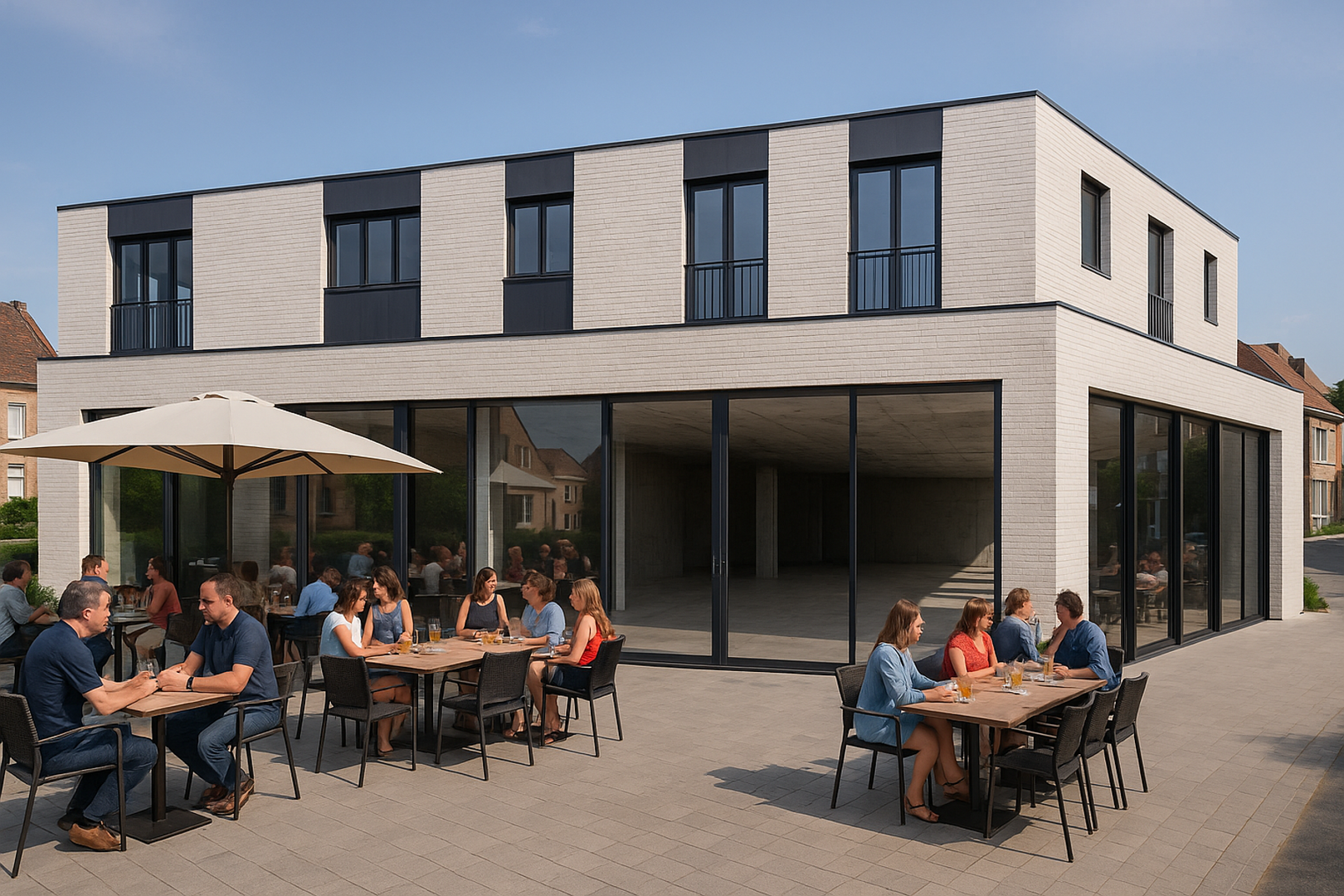 In the heart of Huldenberg, right on the Gemeenteplein, lies this exceptional commercial ground floor of approx. 205 m² featuring a wide shopfront and a large sunny terrace of 42 m².