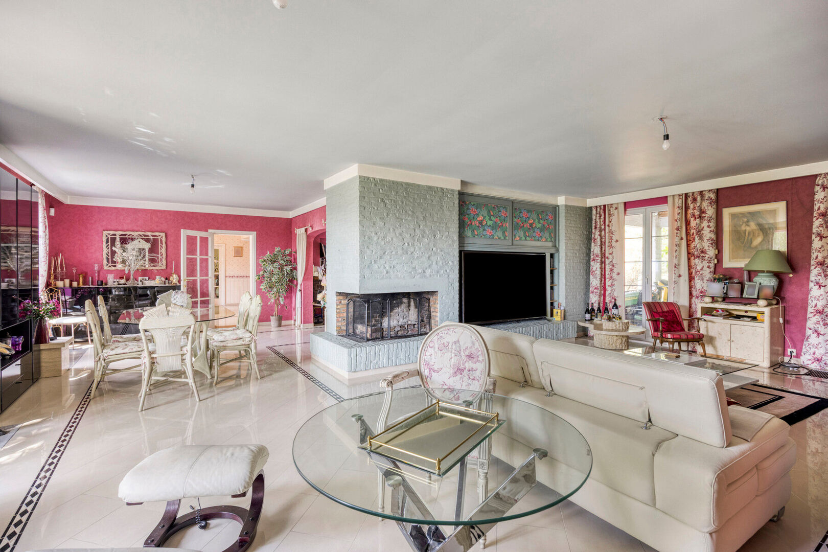 • L-shaped living room (approx. 90 m²) with fireplace and bar area