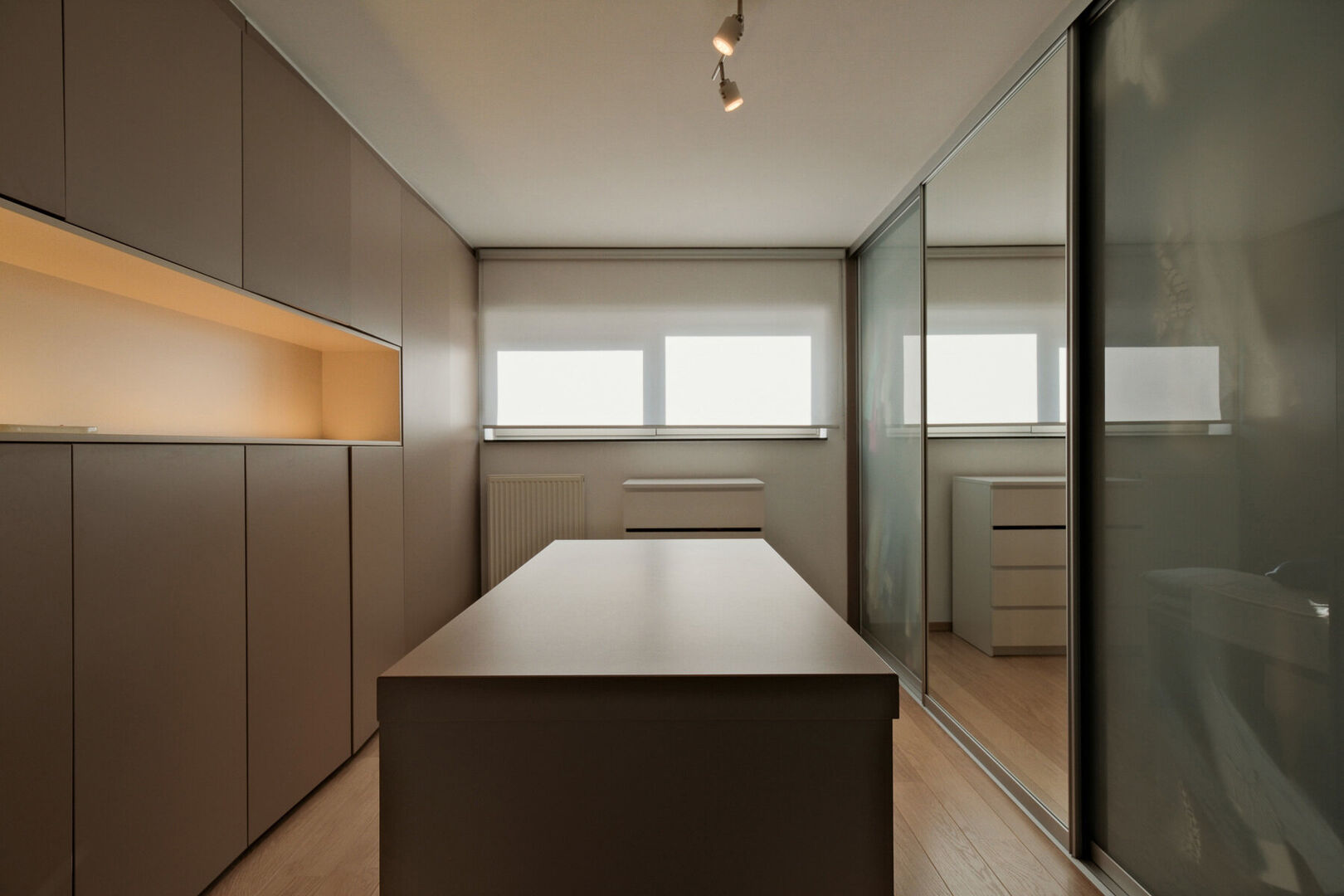 Three comfortable bedrooms (10.9 m² – 20.4 m² – 19.3 m²), one of which is fitted as a dressing room with custom Kredo Keuken Design cabinetry.
