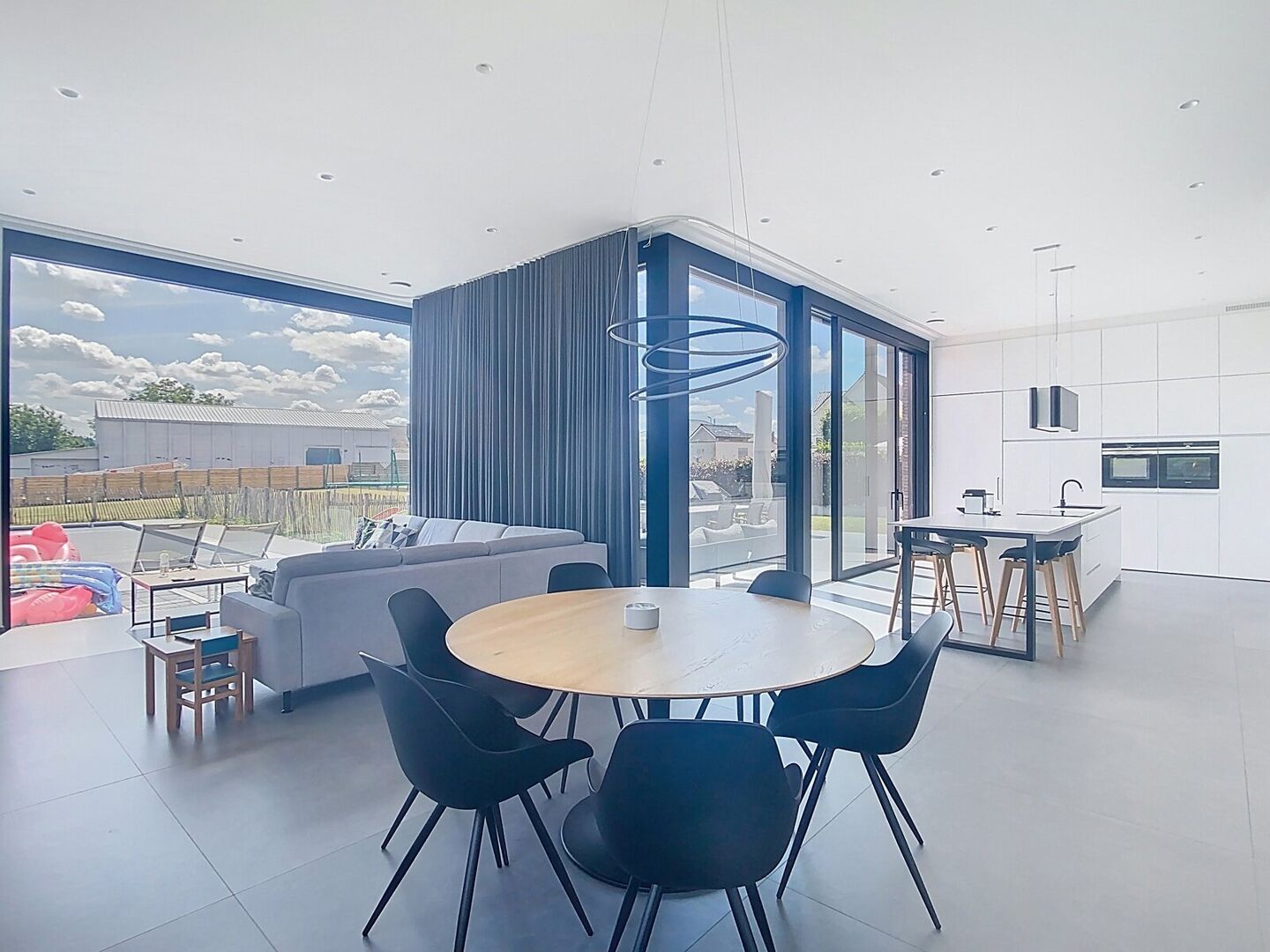 Grâce aux grandes baies vitrées, la lumière naturelle inonde les pièces, créant une atmosphère ouverte et agréable dans chaque espace. La maison est agencée de manière pratique et finie avec un grand souci du détail et de la qualité.