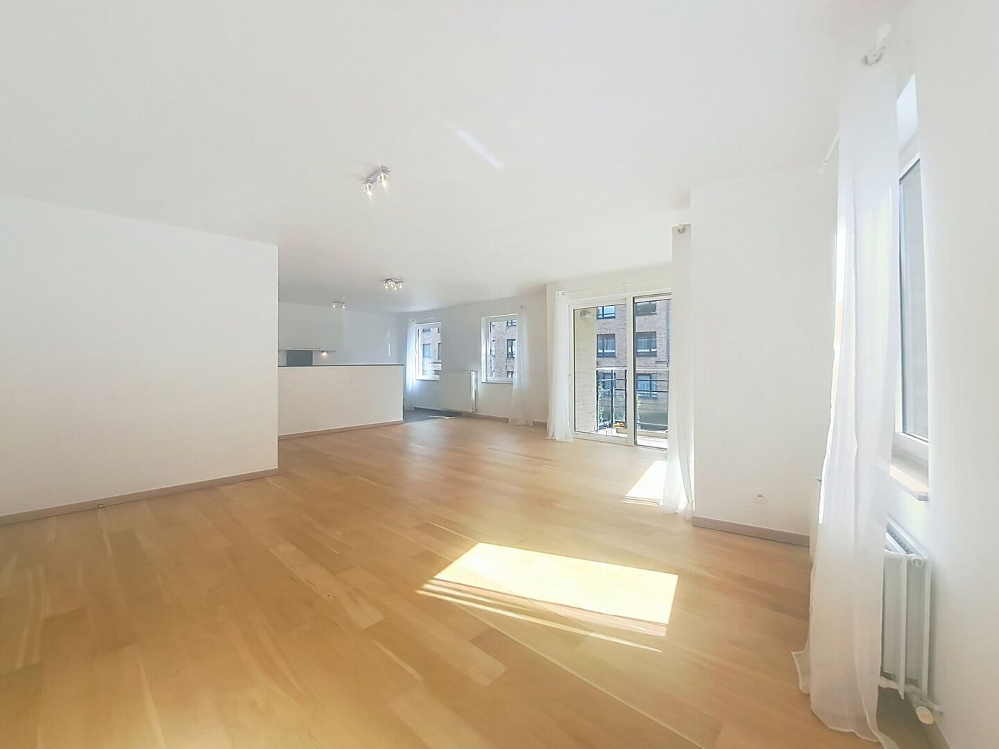Bij het binnenkomen wordt u verwelkomd in een praktische inkomhal met tegelvloer, die toegang biedt tot alle vertrekken. De zeer ruime en lichtrijke woonkamer is afgewerkt met een kwalitatieve parketvloer en sluit naadloos aan op de open ingerichte keuken. Deze is volledig uitgerust met moderne toestellen: koelkast met vriesvak, oven, microgolfoven, keramisch kookvuur, vaatwasmachine en voldoende kastruimte.
