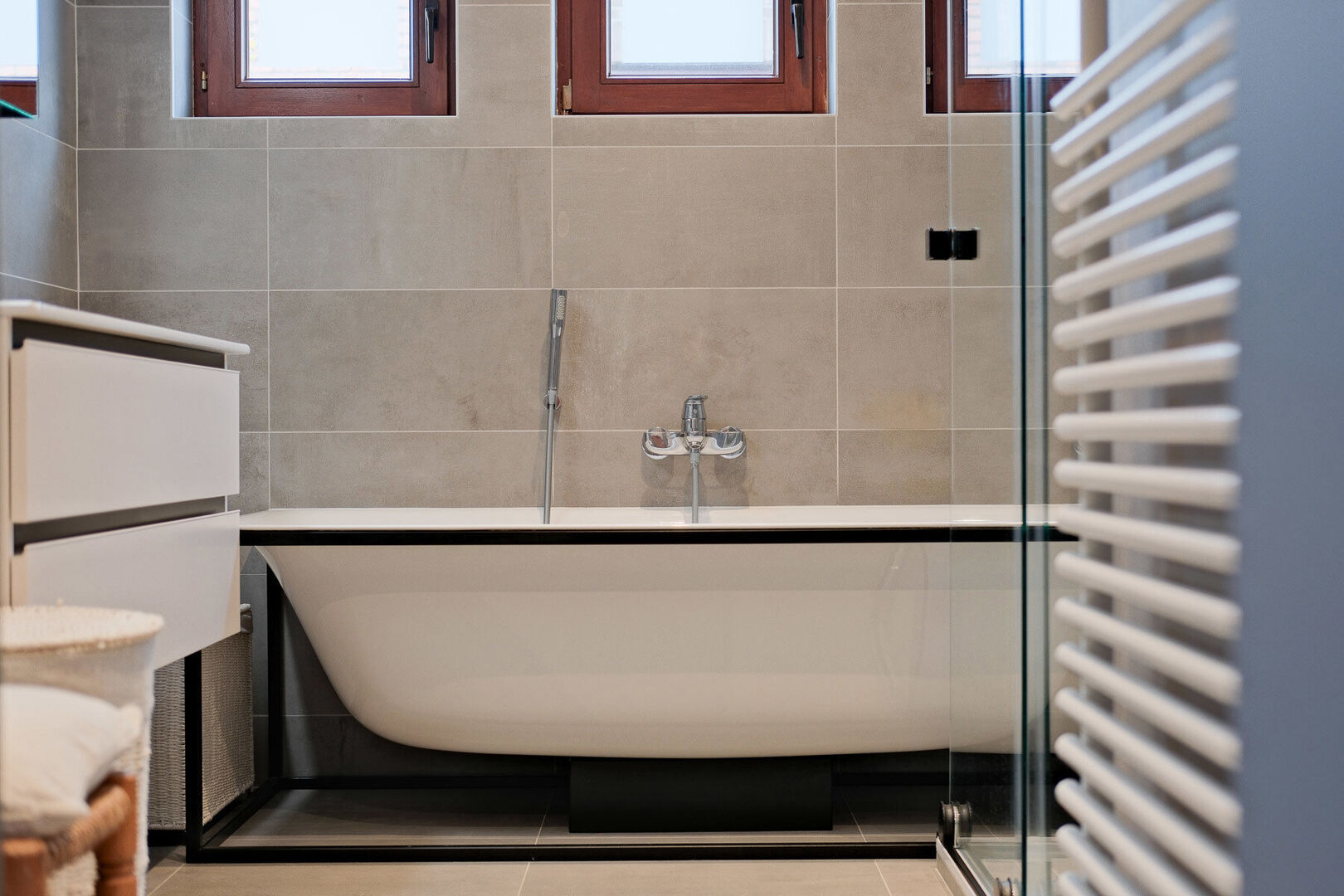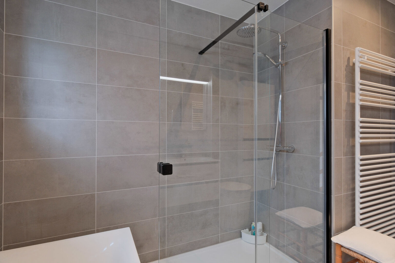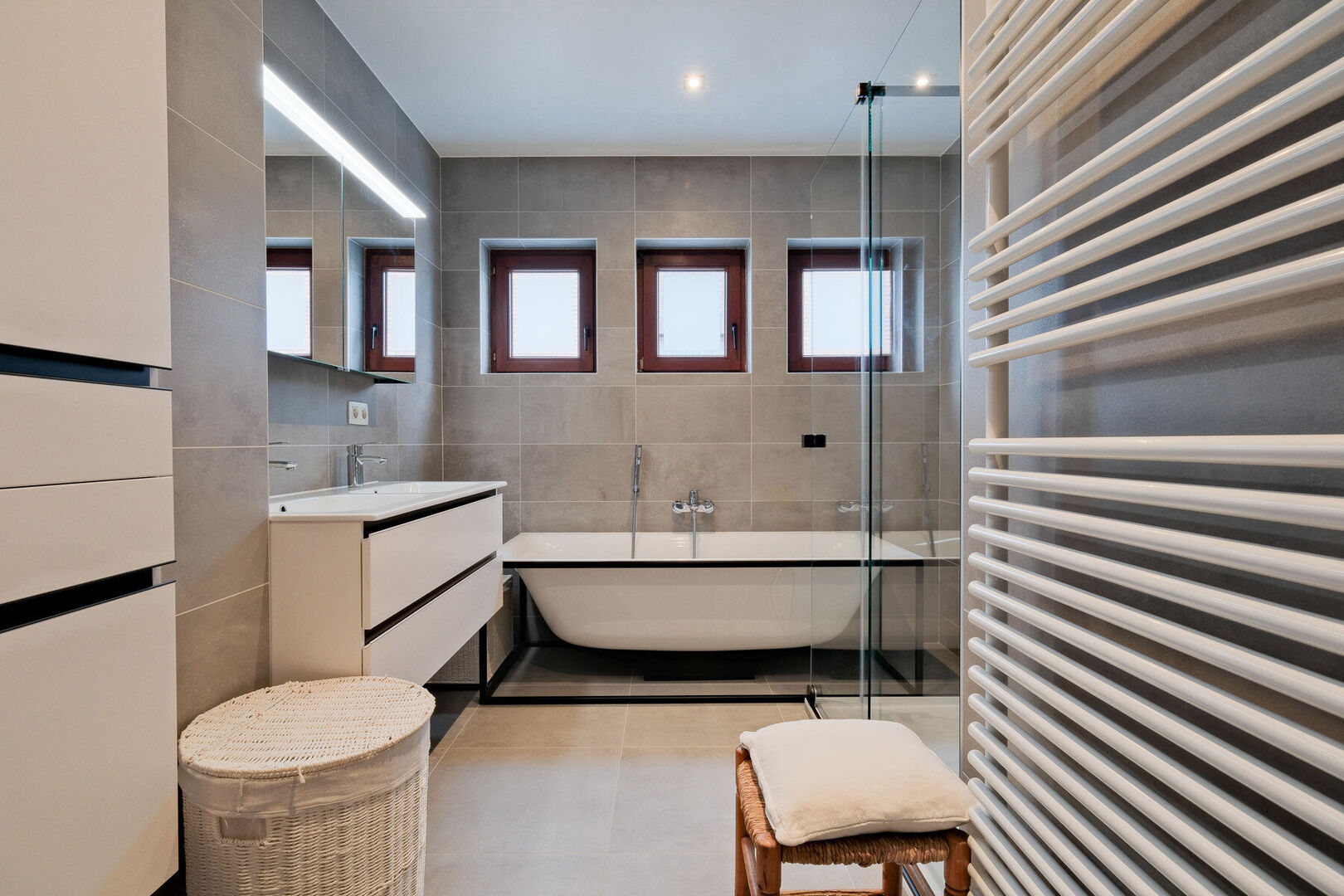 Op de eerste verdieping bevinden zich twee ruime slaapkamers van 20,4 m² en 16,2 m², evenals een volledig gerenoveerde badkamer (2019) van 8,5 m² met ligbad, inloopdouche en dubbele lavabo in meubel. Ook hier is een apart toilet aanwezig.