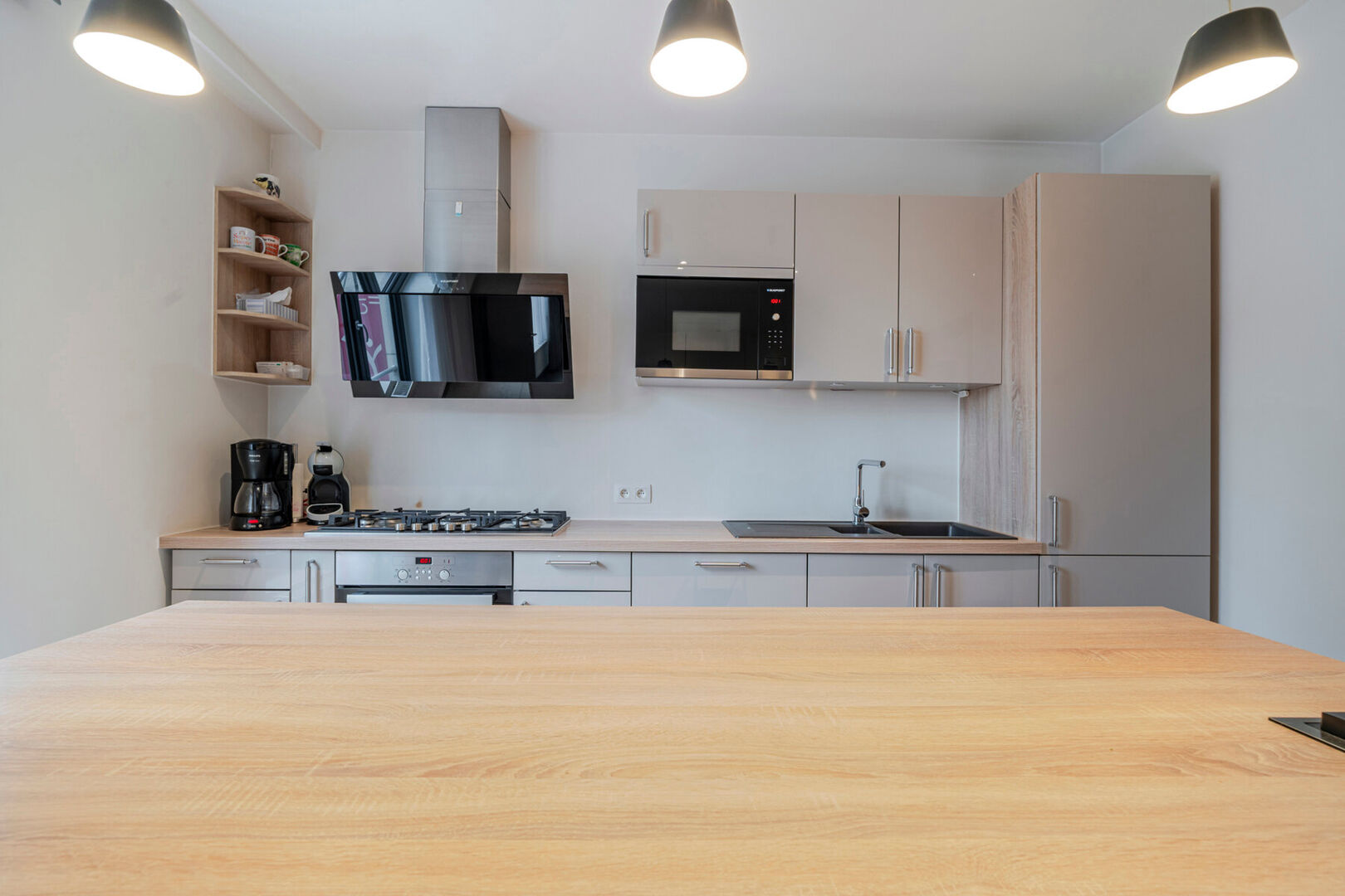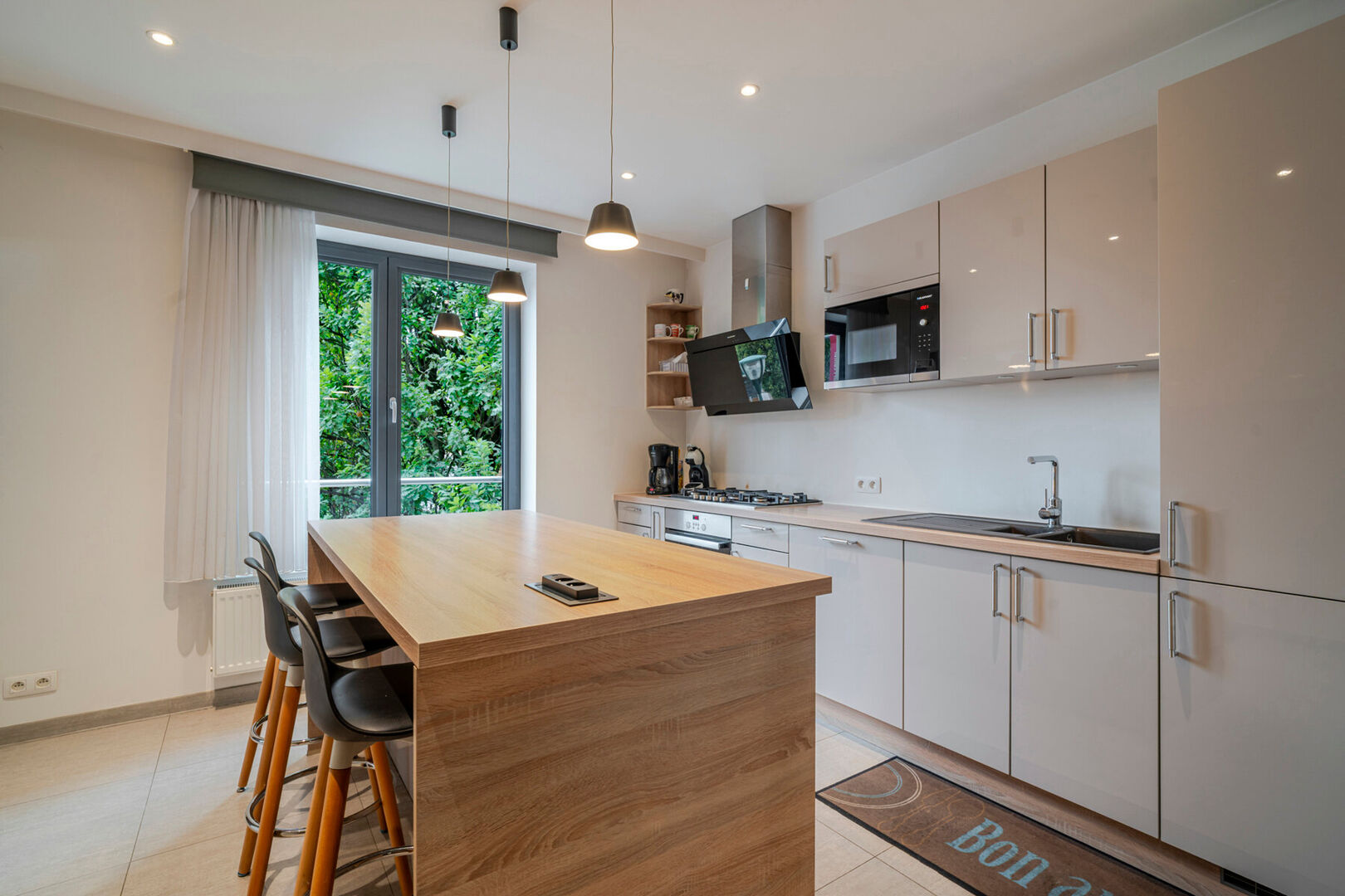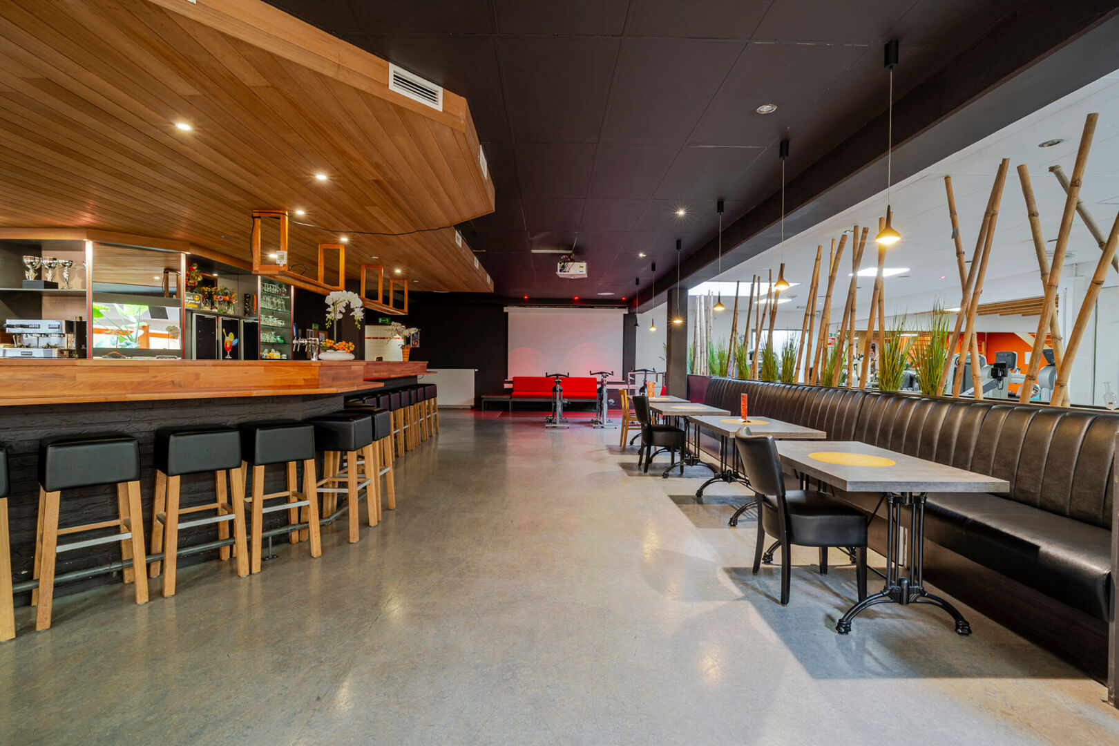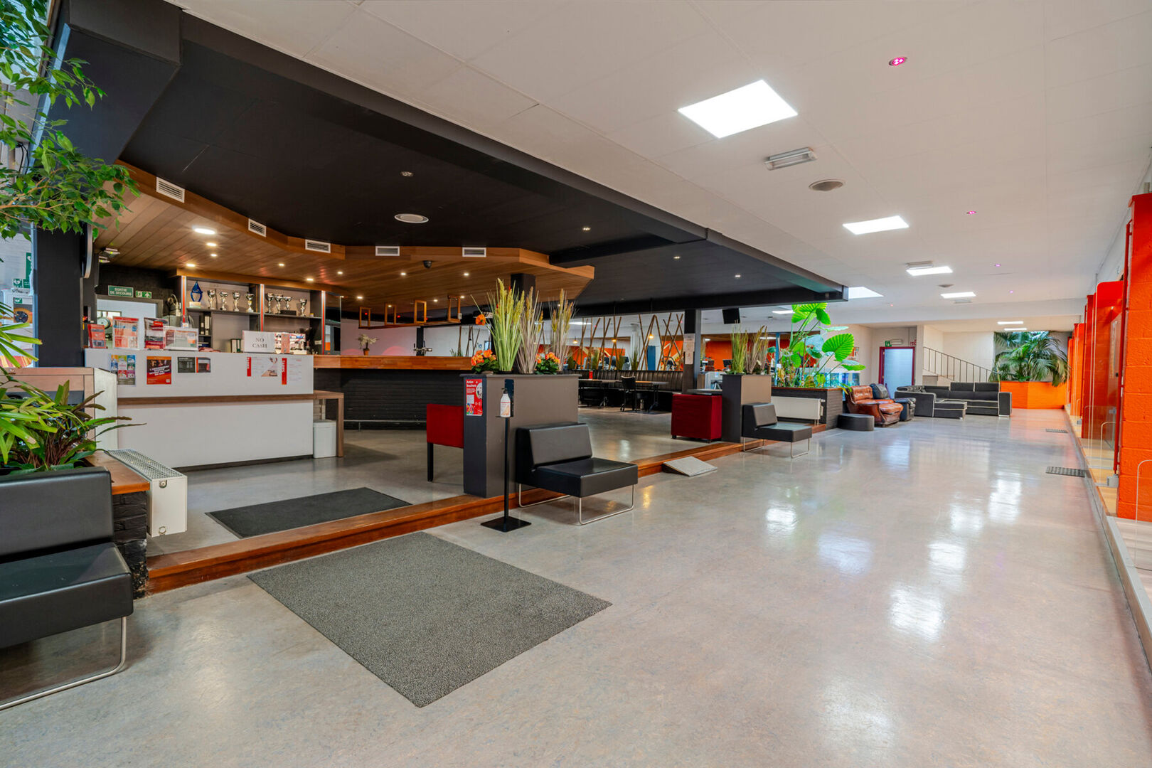 - Ruime inkomhal met een grote bar, eetgelegenheid en volledig uitgeruste industriële keuken met aparte toegang (ideaal voor catering of leveringen)