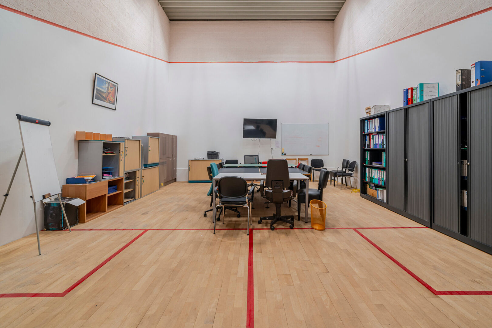 - 4 squashzalen, waarvan 2 momenteel ingericht als vergaderruimte/bureau