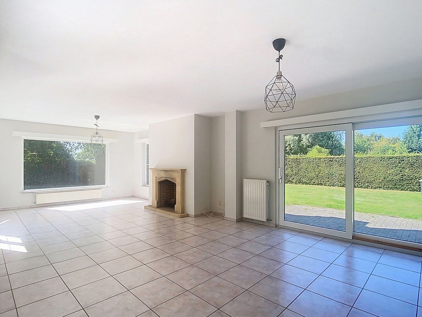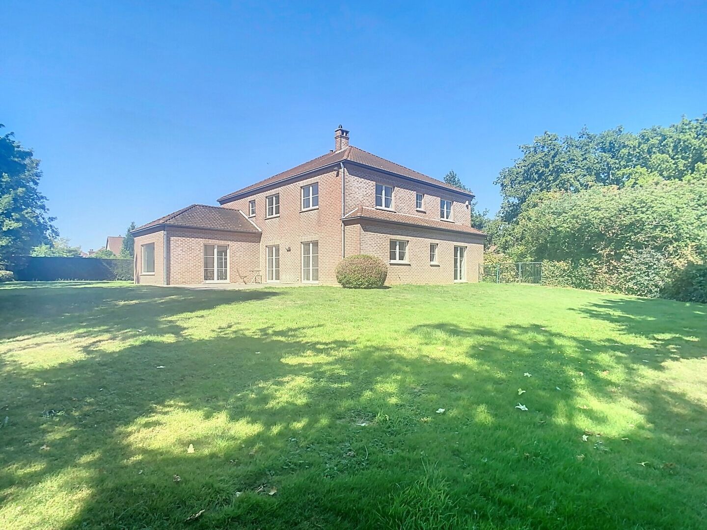 Inkomhal met toilet en vestiaire - woonkamer 46,3m² (tegelvloer) met open haard - eetkamer 13,7m² (tegelvloer) - volledig ingerichte keuken met ontbijthoek 20m² (tegelvloer): koelkast, vaatwasmachine, microgolfoven, oven, keramisch kookvuur - bureau 20m² - 5 slaapkamers (laminaat, 2x met ingebouwde kasten): 2x 16m² / 10,4m² / 20,5m² / 9m² - dressing 5m² - badkamer met bad, douchecabine en 1 lavabo in meubel - badkamer met bad, douchecabine, toilet en 2 lavabo's in meubel (ensuite slaapkamer 4) - douchekamer met douchecabine en 1 lavabo in meubel - berging 6,76m² - wasruimte 5m² (in garage) - garage voor 2 wagens, met afstandsbediening - zolder - kelder: provisiekelder 63m² / cv ruimte 12m² - tuin (omheind, or zuid) met terras 49m² en 17m².