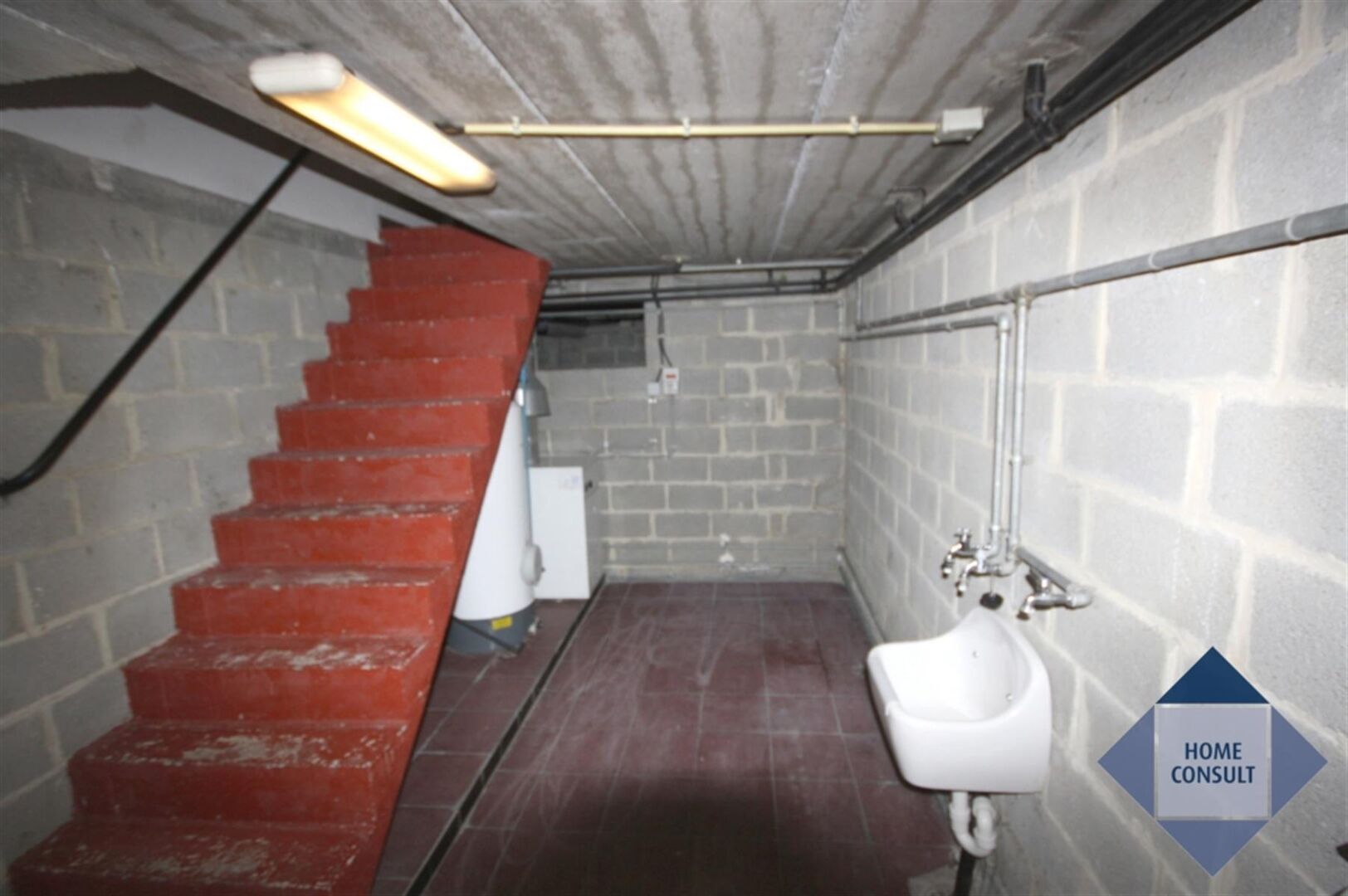 Inkomhal met toilet (tegelvloer) - woonkamer 43m² (tegelvloer) met open haard - volledig ingerichte keuken met ontbijthoek 14,71m² (tegelvloer) - 4 slaapkamers (laminaat): 17,54m² / 12,1m² / 10,33m² / 16,53m² - bureau 14m² (tegelvloer) - 2 badkamers - toilet - garage voor 2 wagens - kelder - tuin 300m² met terras 24m².