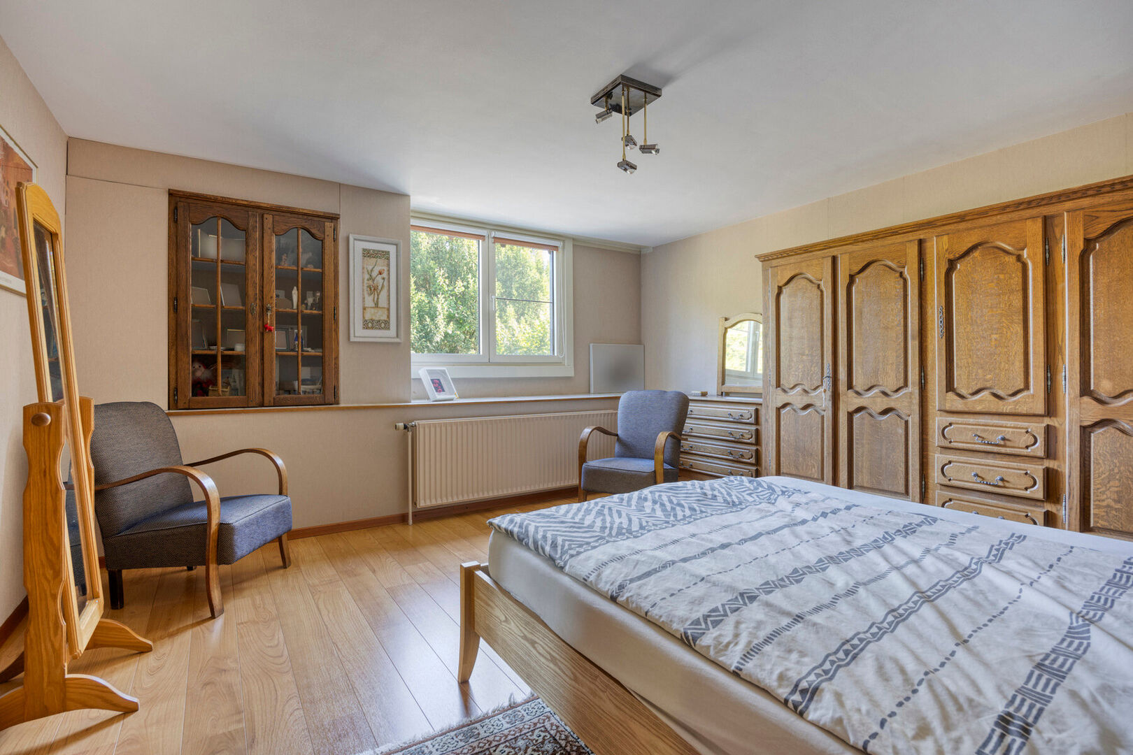 4 ruime slaapkamers, waarvan 1 zolderkamer die reeds de nodige voorzieningen heeft voor water, gas en electriciteit en waar eventueel mogelijkheid bestaat tot installatie van bad/douchekamer.
